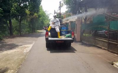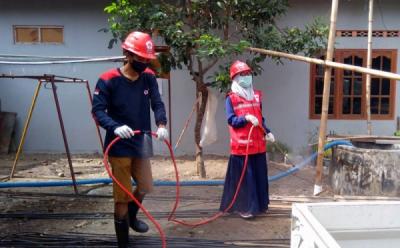 Relawan PMI Blusukan Kampung Semprot Disinfektan