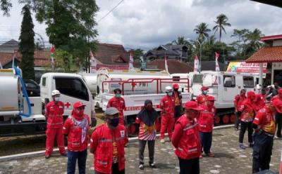 Relawan PMI Semprotkan Disinfektan Guna Mencegah Penyebaran Covid-19
