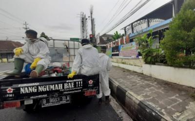 Relawan PMI Semprot Disinfektan di Pasar Hewan Banjarnegara