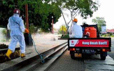 Lingkungan Stadion Kebumen Disemprot Cairan Disinfektan