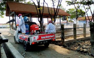 Dari Atas Mobil Bak, Relawan PMI Semprot Disinfektan di Pasar Hewan Kebumen