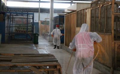 Ketika Pasar Ikan Ungaran Kebumen Disemprot Cairan Disinfektan