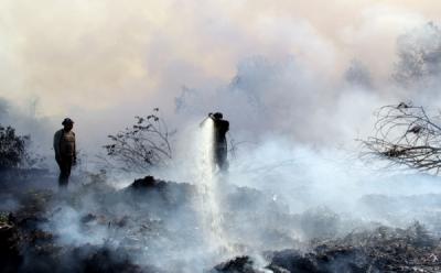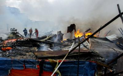 Petugas Damkar Padamkan Api yang Membakar Pasar Cik Puan Pekanbaru Riau