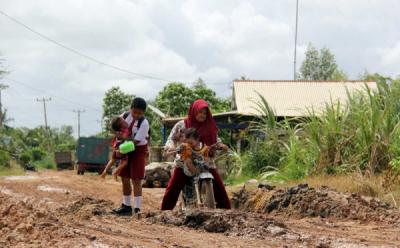 Perjuangan Warga untuk Bisa Melintasi Jalan Rusak di Kecamatan Sinaboi Riau