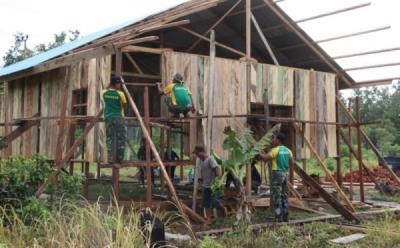 Prajurit Kostrad Bantu Bangun Rumah Warga di Desa Tiowor Halmahera Utara