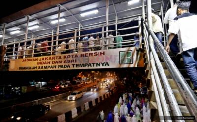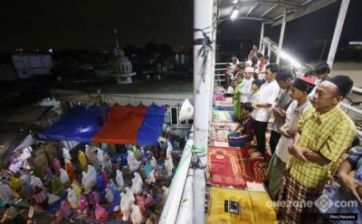 Daya Tampung Musala Sedikit, Warga Pasar Gembrong Salat Tarawih di JPO