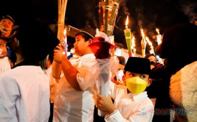 Antusias Anak-Anak Ikuti Pawai Obor Sambut Bulan Suci Ramadan