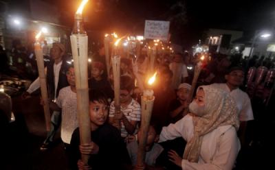 Ribuan Warga Bandung Ikuti Pawai Obor Sambut Ramadhan