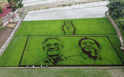 Sawah di Semarang Ini Bergambar Pasangan Ganjar-Mahfud