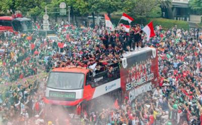 Bak Pahlawan, Ribuan Orang Sambut Arak-arakan Timnas Indonesia U-22 dI Jakarta