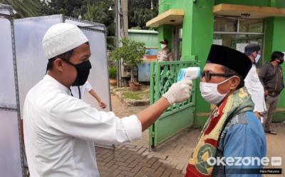 Pemeriksaan Suhu Tubuh Sebelum Melaksanakan Sholat Jumat