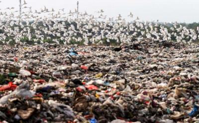 Burung Kuntul Putih Mencari Makan Ditumpukan Sampah