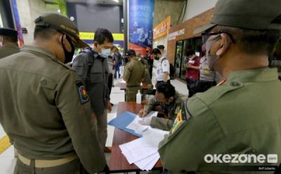 Petugas Periksa Kelengkapan SIKM Penumpang KLB di Stasiun Gambir