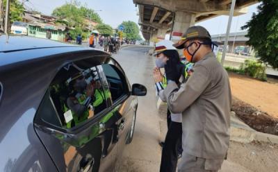 Tak Kenal Lelah Petugas Periksa Kendaraan di Pos Penyekatan Gerbang Tol Cikupa
