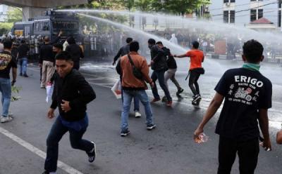 Polsi Halau Pengunjuk Rasa di Kota Serang