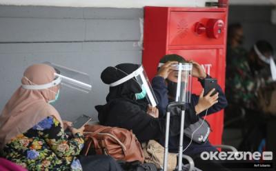 Potret Calon Penumpang Pakai Face Shield di Stasiun Pasar Senen