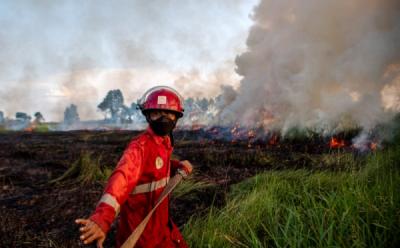 Potret Petugas Damkar Berjibaku Padamkan Kebakaran Lahan di Ogan Ilir Sumsel