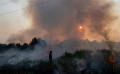 Kebakaran Lahan di Ogan Ilir, Petugas Susah Payah Padamkan Api