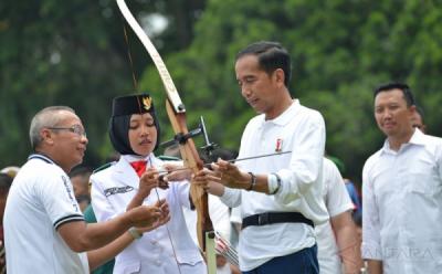 Peringati Sumpah Pemuda Presiden Jokowi Memanah di Istana Bogor