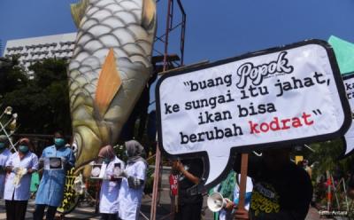 Aksi Bedah Ikan Tercemar Popok yang Terbuang di Sungai Brantas