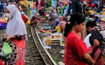 Meskipun Berbahaya, Pasar Pinggir Rel Kereta Surabaya Tetap Ramai