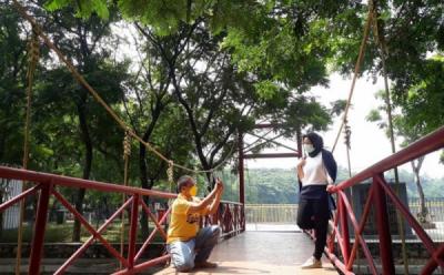 Warga Menikmati Wisata Taman Kota di Tebet Eco Park