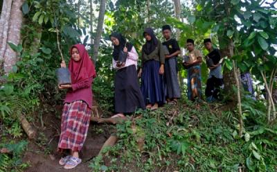 Santri Pesantren Tanam Pohon Sebagai Bentuk Sodaqoh Alam