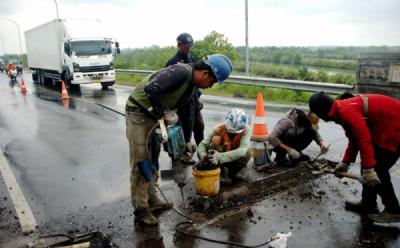Pekerja Perbaikin Jembaran dan Jalan Lingkar Utara Tegal-Brebes