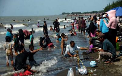 Warga Padati Wisata Pantai Utara Tegal saat Libur Lebaran