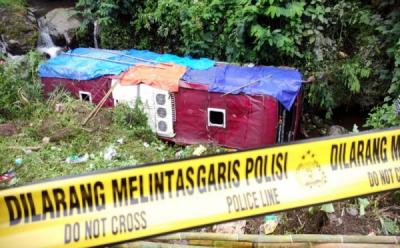 Kondisi Bus Pembawa Peziarah yang Masuk Jurang di Kawasan Wisata Guci Tegal