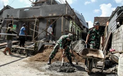 Prajurit TNI Bantu Warga Bangun Rumah di Desa Pandowoharjo Sleman Yogyakarta
