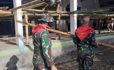 Prajurit TNI AD Bersama Masyarakat Renovasi Masjid Nurul Fajar di Desa Latu, Maluku
