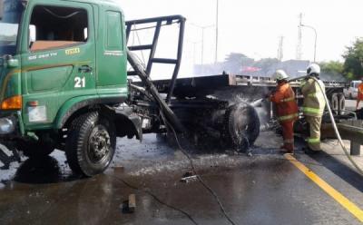 Truk Tabrak Pembatas Jalan di Ruas Tol JORR Km 42