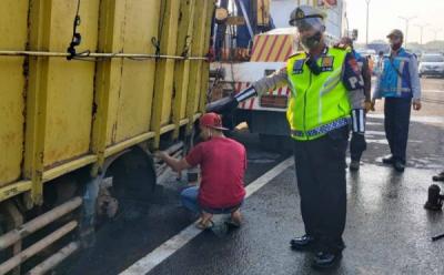 Truk Bermuatan Sampah Patah As di Tol Bambu Apus