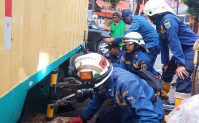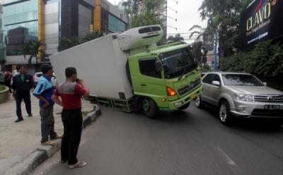 Evakuasi Truk Terperosok di Jalan Raya Poltangan II