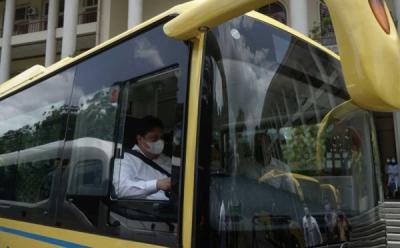 Airlangga Hartato Jajal Bus Listrik di Kampus UGM Yogyakarta