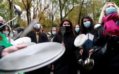 Bawa Peralatan Masak, Pekerja Restoran Demo Tolak Lockdown di Ukraina