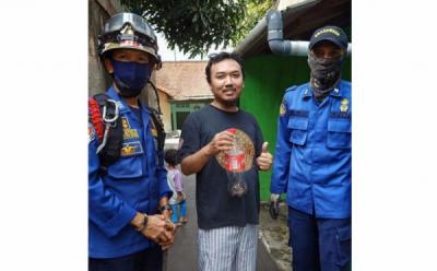 Petugas Pemadam Kebakaran Evakuasi Ular dari Rumah Warga