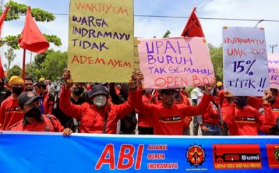 Bawa Spanduk Unik, Buruh Indramayu Tuntut Kenaikan UMP 2022