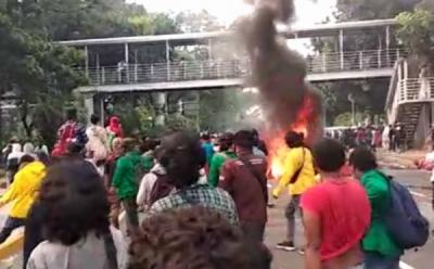 Demo Tolak UU Omnibus Law Berakhir Ricuh di Patung Kuda