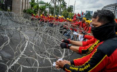 Aksi Buruh Kepung Gedung DPR Tuntut Pencabutan UU Cipta Kerja