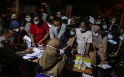 Malam-Malam Ribuan Warga Palangkaraya Antre Berdesakan untuk Daftar Vaksinasi