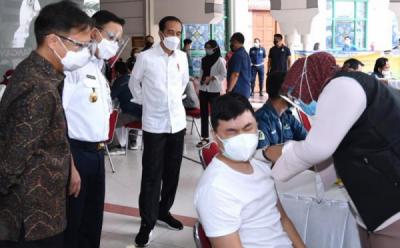 Presiden Jokowi Tinjau Pelaksanaan Vaksin Covid-19 di Pasar Tanah Abang