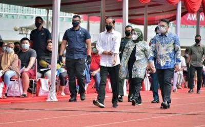 Presiden Jokowi Tinjau Vaksinasi Massal di Stadion Pakansari
