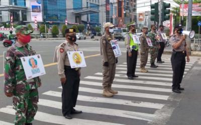 Petugas Gabungan Sosialisasi Pencegahan Covid-19 di Jalan Pemuda