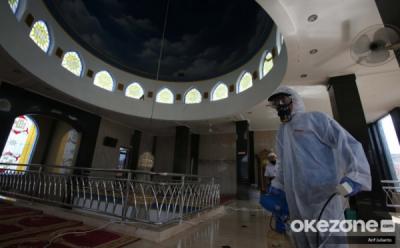Intip Proses Penyemprotan Desinfektan di Masjid Istiqlal