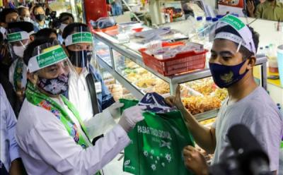 Kampanye Bebas Covid-19 dan Penggunaan KBRL di Pasar Tebet Barat
