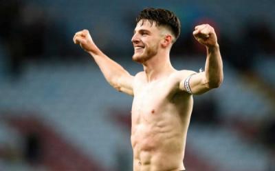 Cetak Gol ke Gawang Aston Villa, Declan Rice Buka Baju Sambil Pamer Otot
