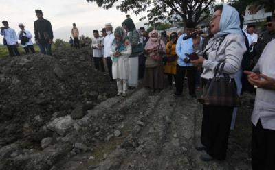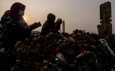 Warga Panjatkan Doa saat Ziarah Makam Covid-19 di TPU Srengseng Sawah