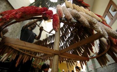 Pohon Natal Terbuat dari Batang Jagung Berwarna Merah Putih